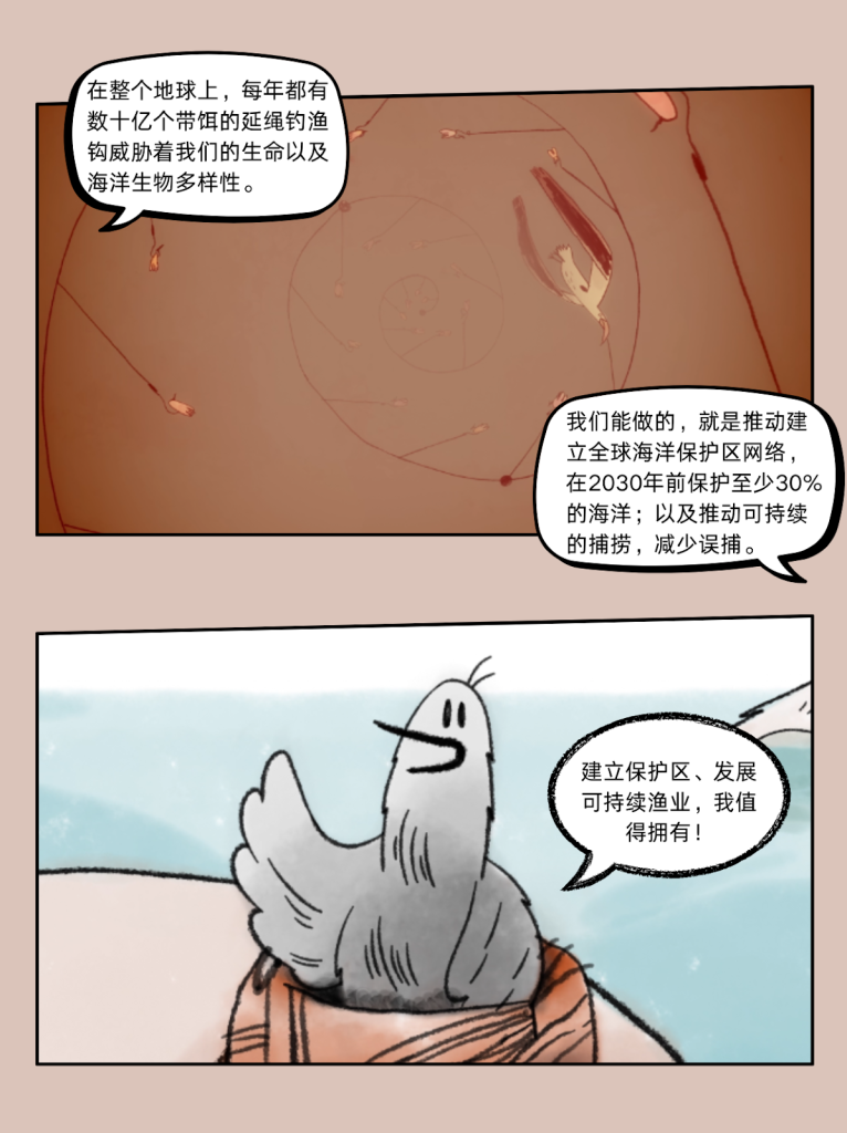 发展可持续渔业,推进有效渔业管理手段是守护海洋生态环境的重要方法之一。目前科研人员基于实际捕捞数据与动物行为不断研发出可以减少兼捕的渔具、渔法,减少对于鲨鱼、海龟等物种的伤害,并应用在各地捕捞工作中。同时,建立海洋保护区,在2030年前保护至少30%的海洋,也是维护海洋生物多样性的有效方法。让我们共同努力支持可持续渔业发展与海洋保护区建设,携手守护我们可爱的海洋“邻居”们!