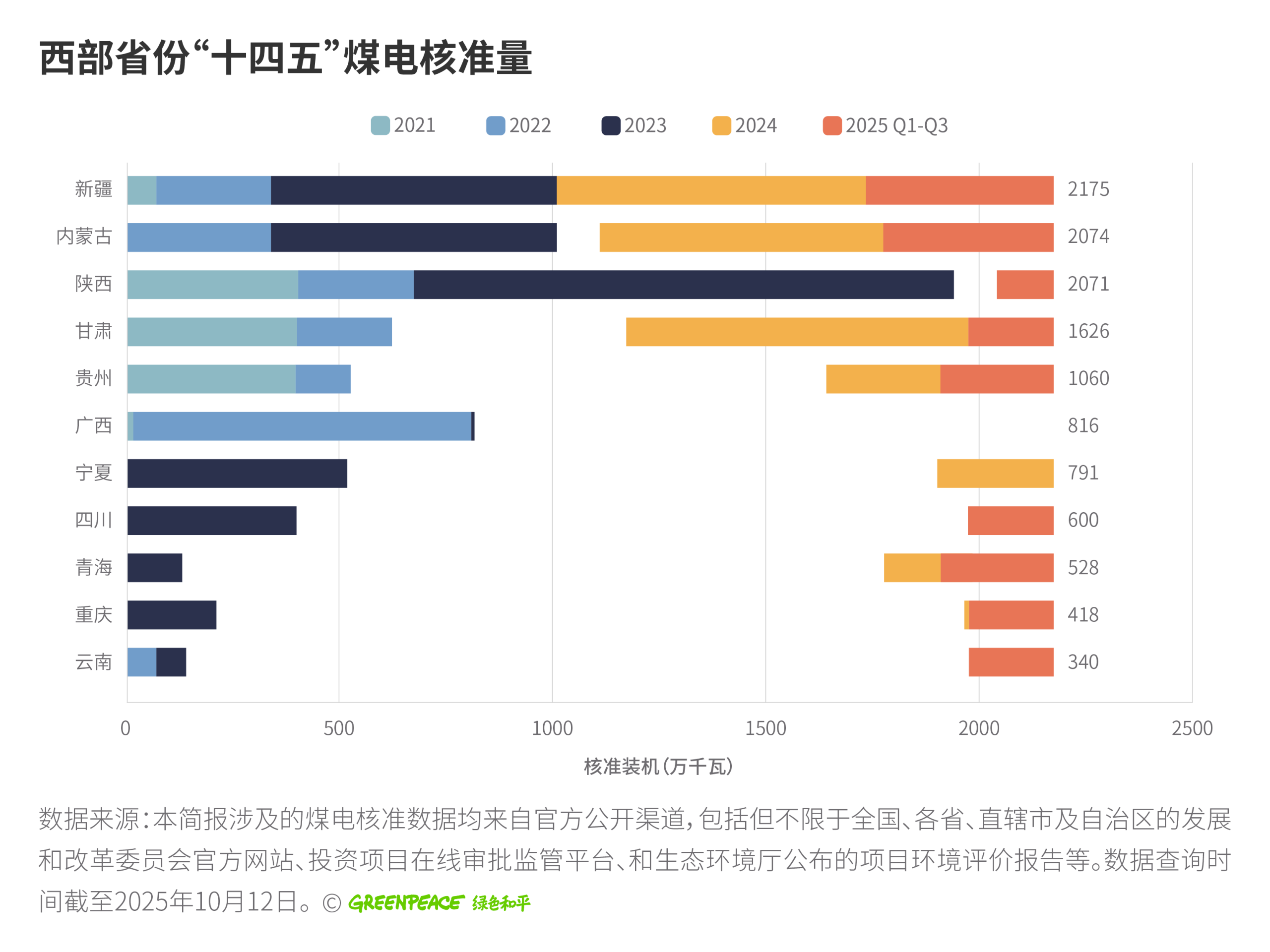 [7] 本简报涉及的煤电核准数据均来自官方公开渠道,包括但不限于全国、各省、直辖市及自治区的发展和改革委员会官方网站、投资项目在线审批监管平台、和生态环境厅公布的项目环境评价报告等。数据查询时间截至2025年10月12日。本简报对“十四五”期间的往年的核准装机容量数据进行了最新修订,以反映持续的数据追踪和信息确认工作。