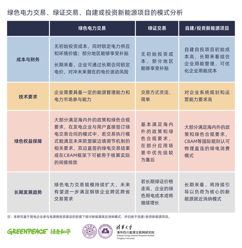 2025年11月27日,国际环保机构绿色和平、清华四川能源互联网研究院联合发布报告《中国钢铁行业绿电消费的进程、挑战与建议》,通过对中国钢铁行业绿电消费的关键动因与消费模式进行分析,系统梳理并对比了绿色电力交易、绿证交易、自建/投资新能源项目这三类主要绿电消费模式的参与要点和发展趋势,为行业实践提供参考。
