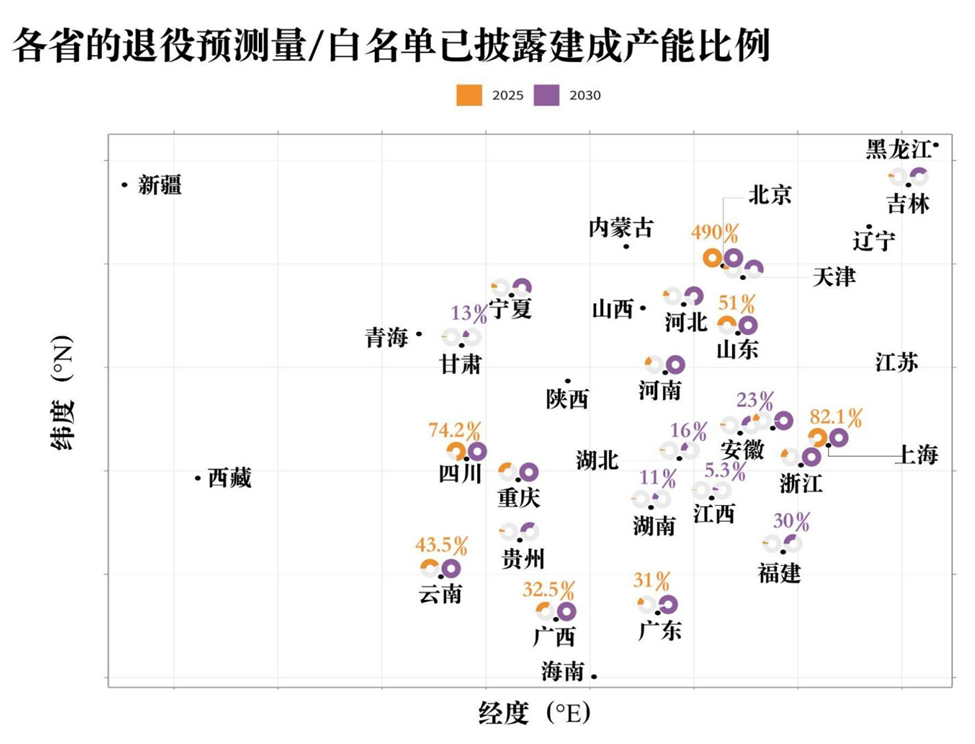 与此同时,江西、湖南、湖北、贵州等内陆省份的产能可能在未来数年仍处于长期闲置状态。线性回归结果显示,产能规模与利用率呈负相关,即早期投入越大的地区反而越容易陷入低效或闲置困局。这表明,当下的“全国过剩”现象实则隐藏着结构性不均衡:一头是眼前的闲置产能,另一头是未来的回收缺口。如果不尽早推动区域间协调与产能优化,2030年后的退役潮极可能再次引发资源浪费与资金空转。