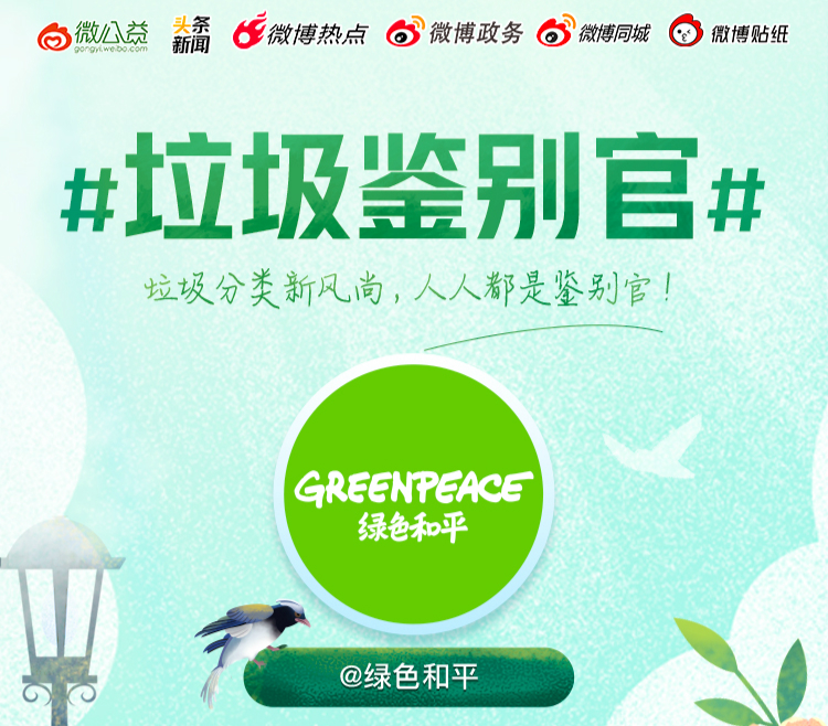 2020年5月1日,北京开始施行垃圾分类政策。绿色和平受邀微公益发起的“垃圾分类一起来”活动当值“垃圾鉴别官”,解答了市民关于垃圾分类的一些疑问,例如如何妥善处理灯管及镇流器、铝箔是否属于可回收垃圾、铲屎官最关心的猫砂属于什么垃圾等等。让我们一起从自身做起,培养减量和分类的好习惯,保护好身边的环境。